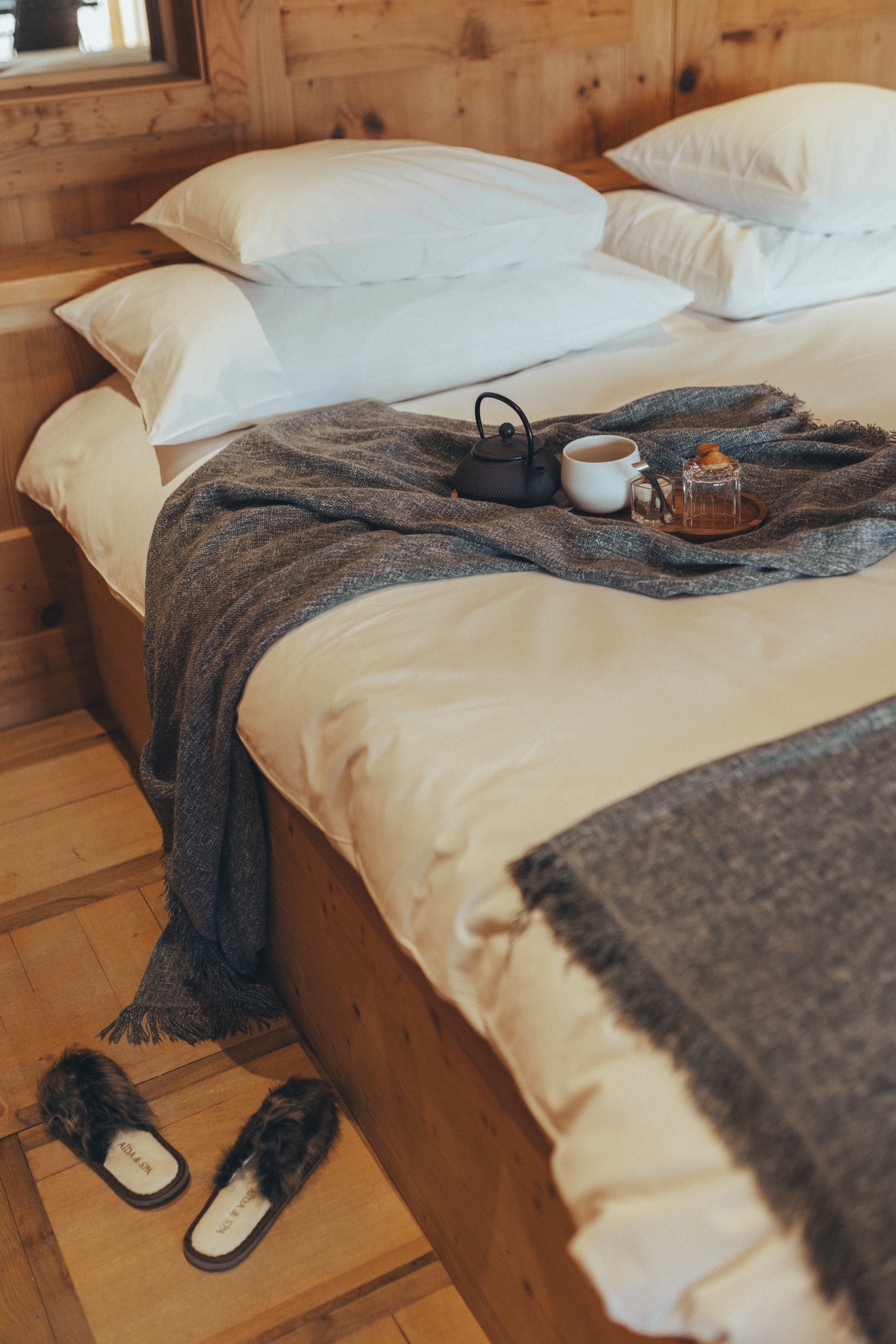 Das Schlafzimmer und sein Wohnzimmer befinden sich im Obergeschoss und bieten einen grandiosen Blick auf die Walliser Gipfel. Die Holzverarbeitung erfolgt nach der regionalen Tradition des Wallis, was für eine authentische und zugleich angenehme Eleganz sorgt. Das warme Badezimmer und der begehbare Kleiderschrank runden das Ganze ab.